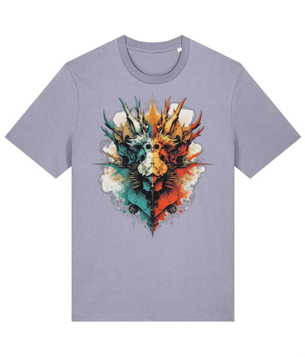Dive into the chaos and order of existence with the Balanced Harmony design. This striking artwork fuses organic and mechanical elements into a split composition of fire and ice, light and shadow. A fusion of skulls, horns, and abstract symmetry creates a visually intense statement that embodies duality, contrast, and equilibrium.